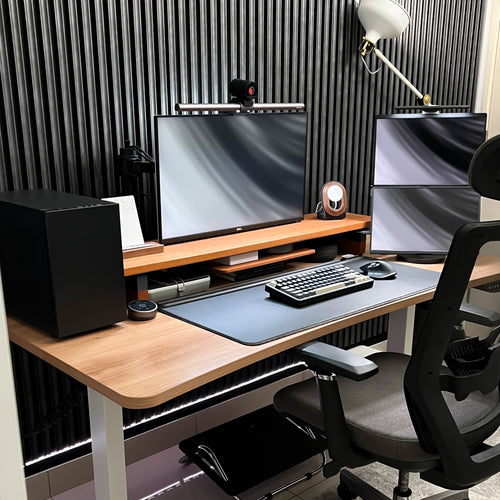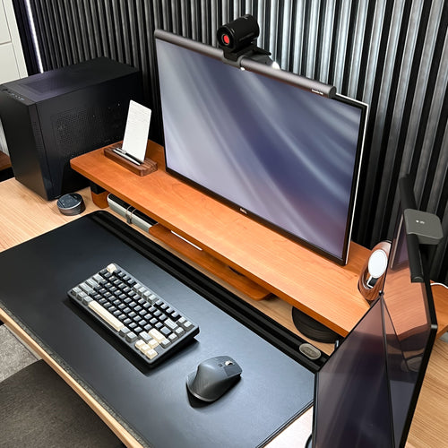 Modern and minimalism while maintaining the simplicity and functionality aspect of it. I tend to lean towards basic and neutral colors mainly black, wood, white/gray. I’m also selective of what items that I want to have on my desk so all of it serves a purpose and is within reach.