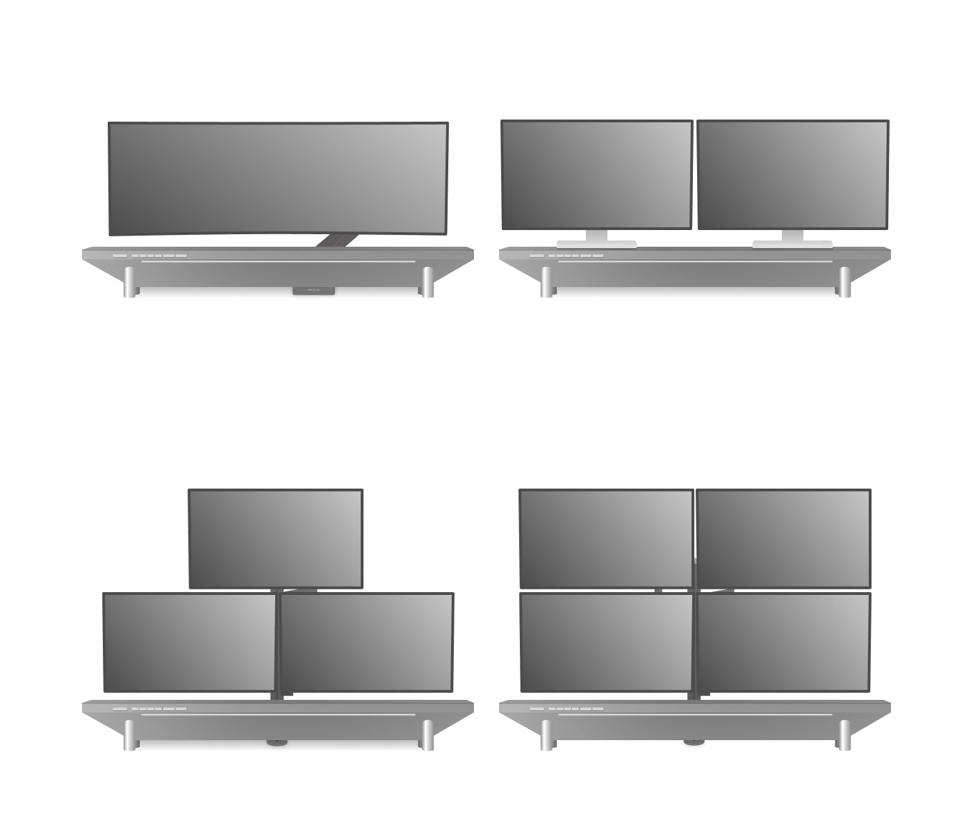 Optimized for two 27" screens (or other sizes) with seamless power/cable integration.